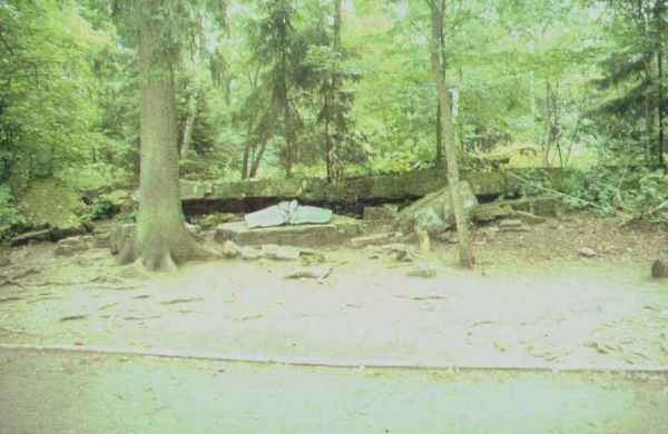 Görlitz (Gierlotz) Nicht weit hiervon liegt Rastenburg (Ketrzyn) und 5 km nördlich im Wald die Wolfsschanze, mit den Resten von Hitlers Führerbunker, von dem aus er den Krieg gegen Rußland befehligte. Im Januar 1945 sprengten Pioniere der Wehrmacht die Bunkeranlagen, was allerdings nur teilweise gelang. Die Decke des Führerbunker hatte Dicke von 10 m. Im ersten Sperrkreis befindet sich auch die Lagebaracke, in der Stauffenberg am 20.7.1944 sein Attentat auf Hitler verübte. Davor ist eine Gedenktafel mit deutschem und polnischem Text angebracht. |